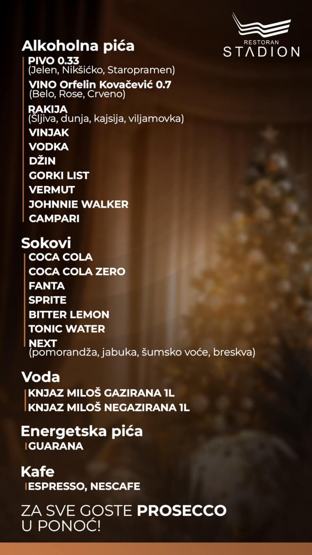 RESTORAN STADION - Nova Godina, Doček Nove Godine 2026