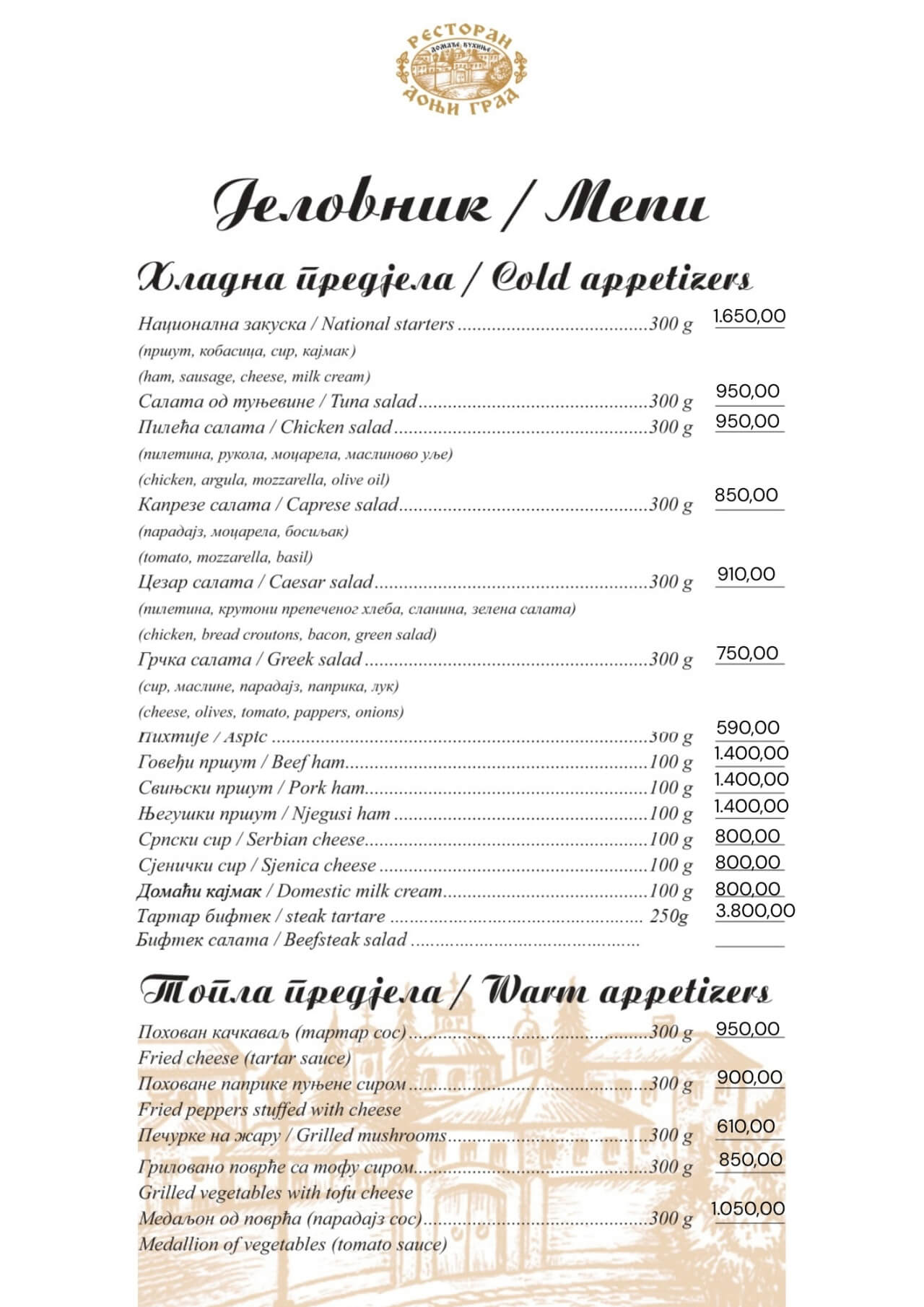 Ako želite da osetite toplinu starog Beograda, a istovremeno uživate u tradicionalnim specijalitetima pripremljenim na domaći način, restoran Donji grad je adresa kojoj ćete se rado vraćati.